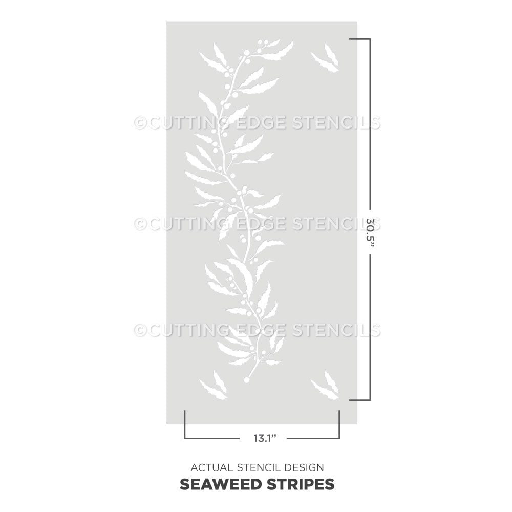 Check out our Seaweeed stripes stencil for nature-inspired or nautical walls! This seaweed stencil design was inspired by the beautiful seaweeds of the Tulum's coast where they are elegantly swaying in the blue tropical waters. And now you can grace your accent wall with this beautiful stencil design! Stenciled stripes are very elegant and make the walls look taller. Stencils are in many ways better than popular seaweed wallpaper! Stencils are reusable and let you use any color you want to perfectly match your decor.