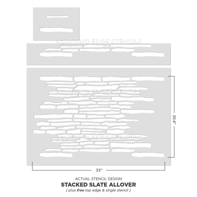 Our Stacked Slate Wall stencil is a great way to get that natural look without having to go to the quarry :) This stencil pattern looks fabulous on the lower half of a room or even as a stenciled accent wall, especially, the fireplace wall. Easy to use, easy to custom color and beautiful to look at. Anyone can get a great stenciling result just by watching our informative "How to Stencil" Video Tutorials! Make sure to take a look at all of our amazing wall stencils! Use a sponge to achieve a mottled look, or stipple with a large stencil brush for multi-color effect.