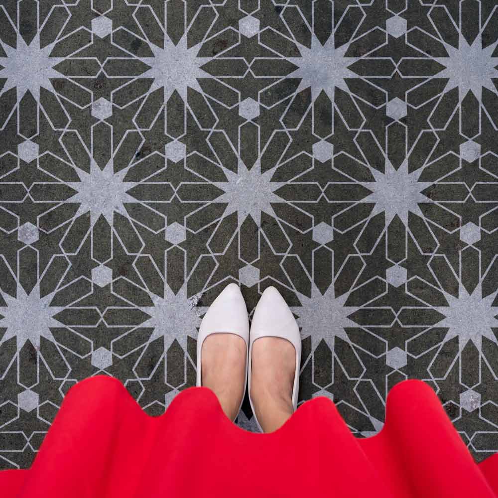Note that this stencil is designed to be used as a continuous floor pattern and might not fit precisely into your existing tiles.