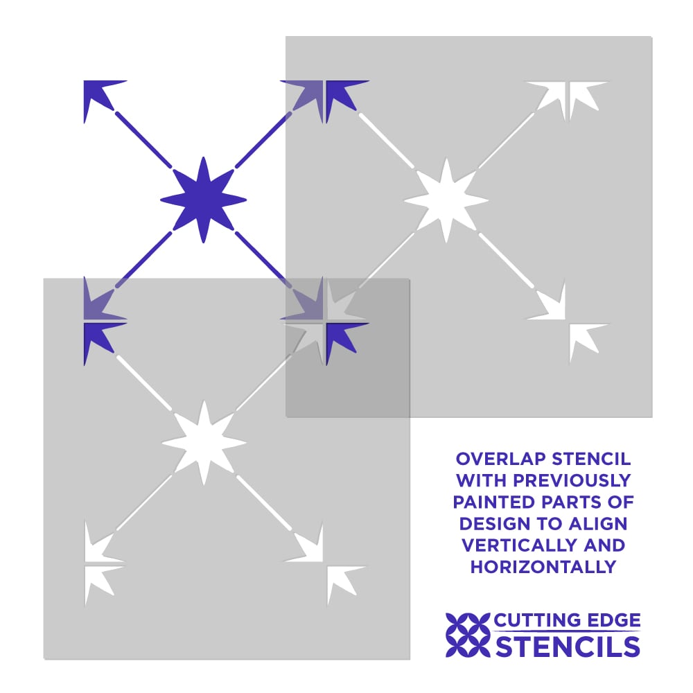 Give your old boring tile a new life with our Starlet Tile Stencil! This starry tile stencil pattern shines bright juest about anywhere! It's just as at home on a floor as it is on an accent wall. Simple geometric patterns work in all color combinations so don’t be afraid to get creative!