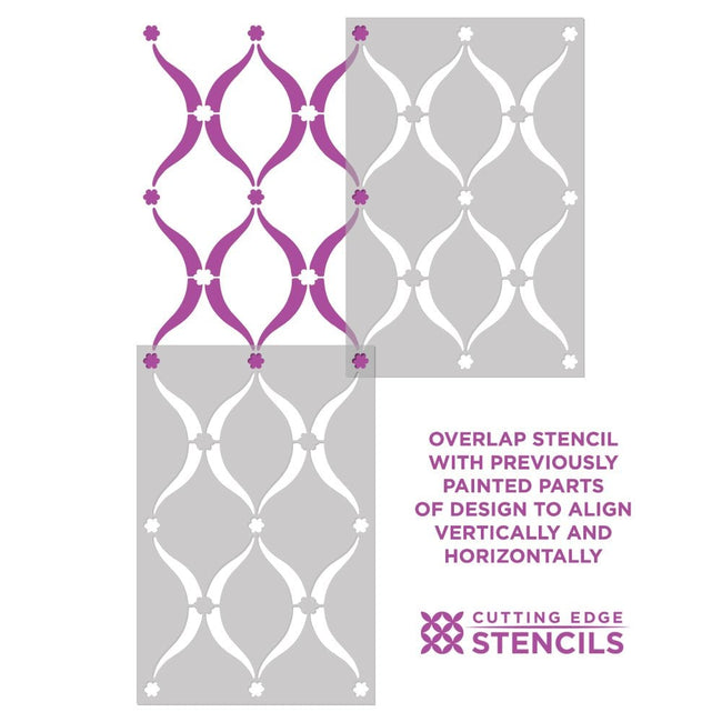 This design will look so beautiful stenciled on your accent wall. Easy registration system, simply line up your stencil with the design of previously painted print, check for level and continue. This gives you a seamless "wallpaper" look. While prior stenciling experience is recommended for allover patterns, even beginner stencilers get great results! This design is recommended for feature/accent wall or allover room pattern, and also works for furniture and fabric embellishment.