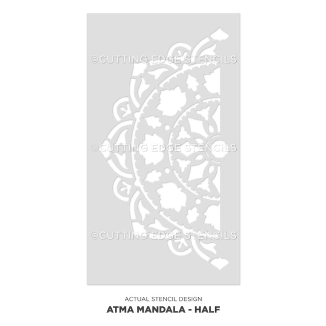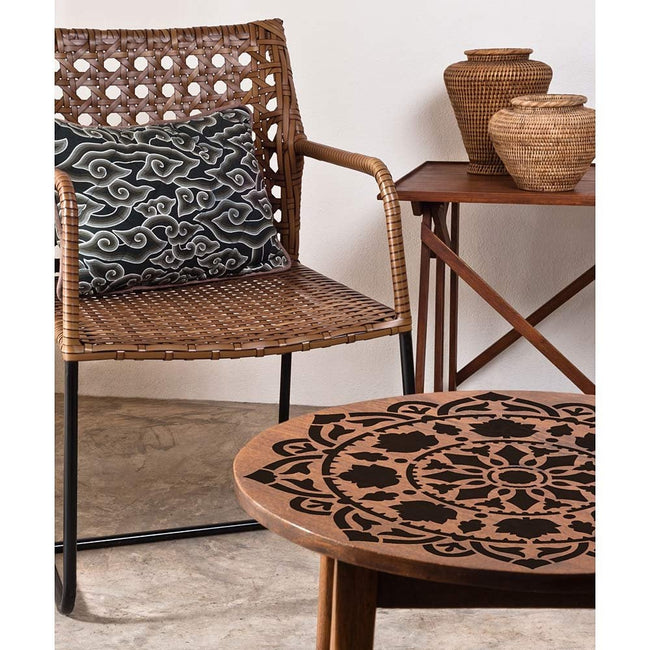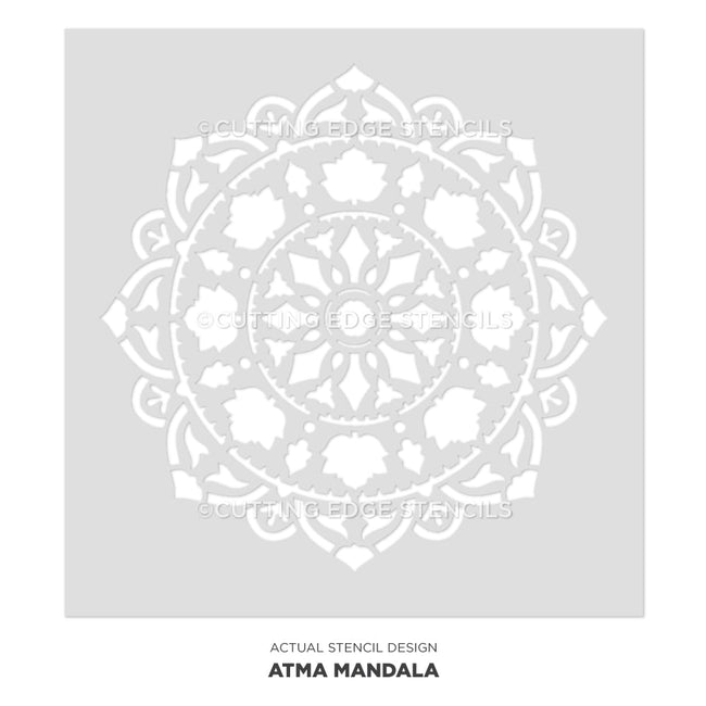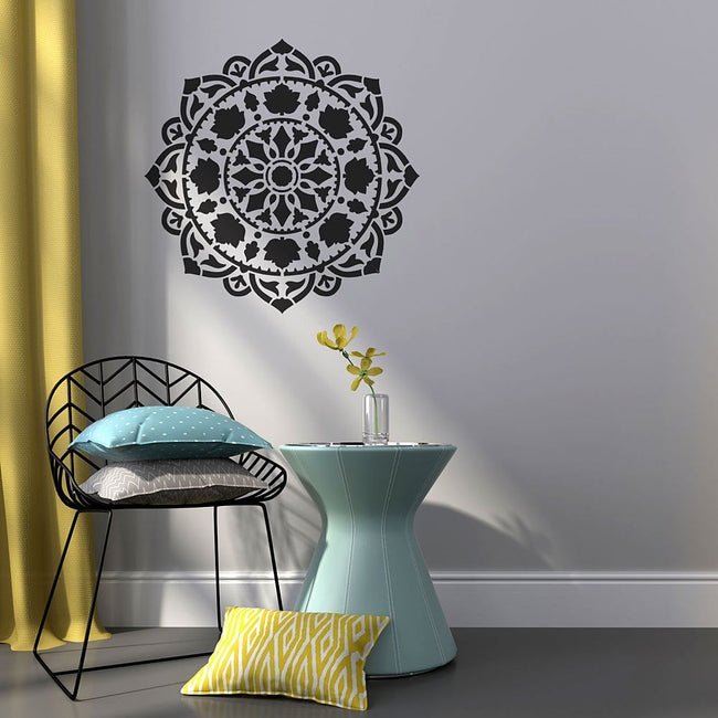 This beautiful mandala stencil was named by our customer Manasi M. in our recent stencil naming contest, and it's meaning - soul, the real Self, one's divinity, the substance of everything, the unseen basis. This beautiful stencil pattern is a breeze to use. Mandala stencils look great on walls, floors and furniture. We offer this mandala stencil in a smaller 12" size which is perfect for furniture projects (stools and side tables) and also craft stenciling. Why use a mandala decal when you can create beautiful designs using our reusable large mandala stencils?