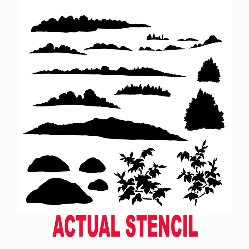 This Small Trees Assortment Stencil is a part of our Mural Stencil Series. There are six small tree stenciled that are great to fill in a woodland horizon. A wonderful way to block in your major mural elements in a fraction of the time.
