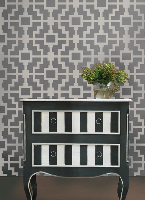 Beautiful geometric stencil Shipibo. This allover stencil was inspired by traditional art of tribal Shipibo indians from the Amazon basin. Ancient designs like this one today get a second life as a beautiful stencil pattern for modern interiors! Try it for your next DIY wall painting project! This geometric design will look stunning stenciled on your accent wall.