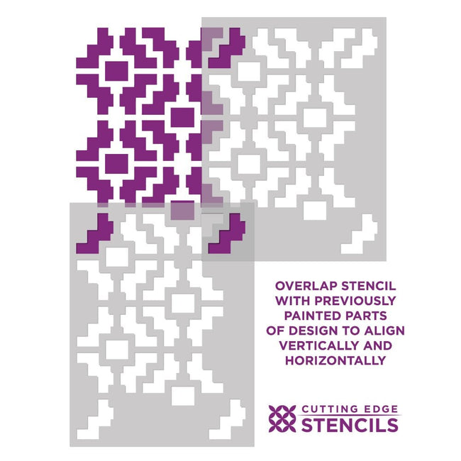 While prior stenciling experience is a plus for allover patterns, even beginner stencilers get great results! This design is recommended for feature/accent walls, and also works for furniture and fabric embellishment.