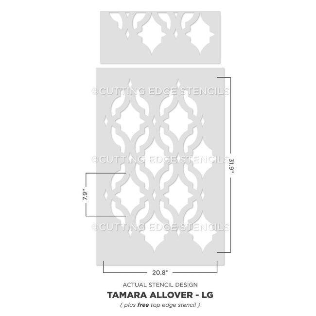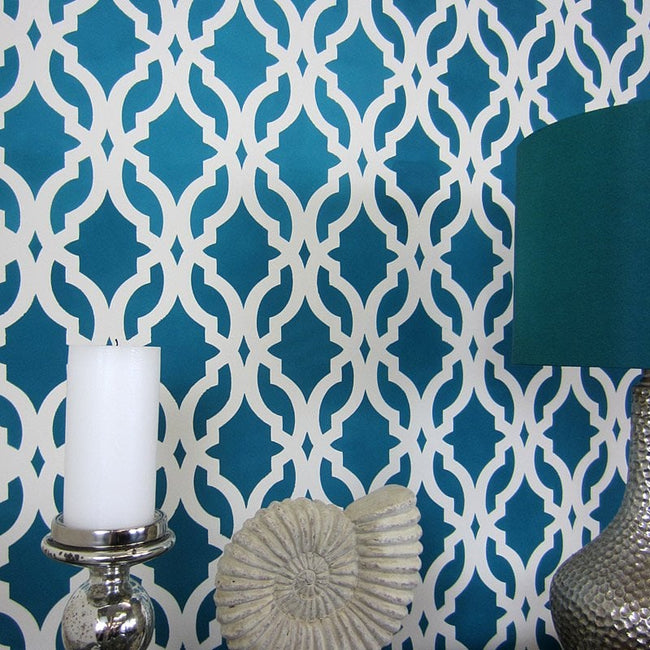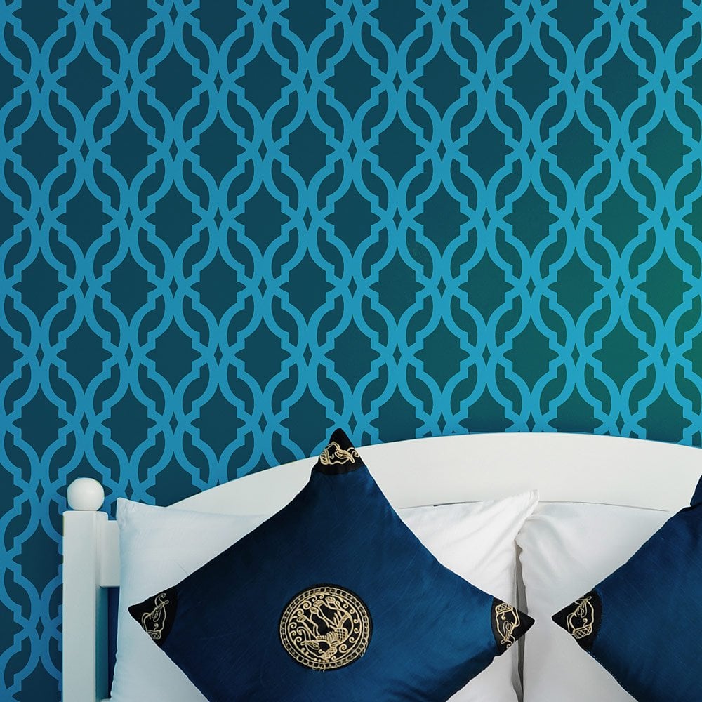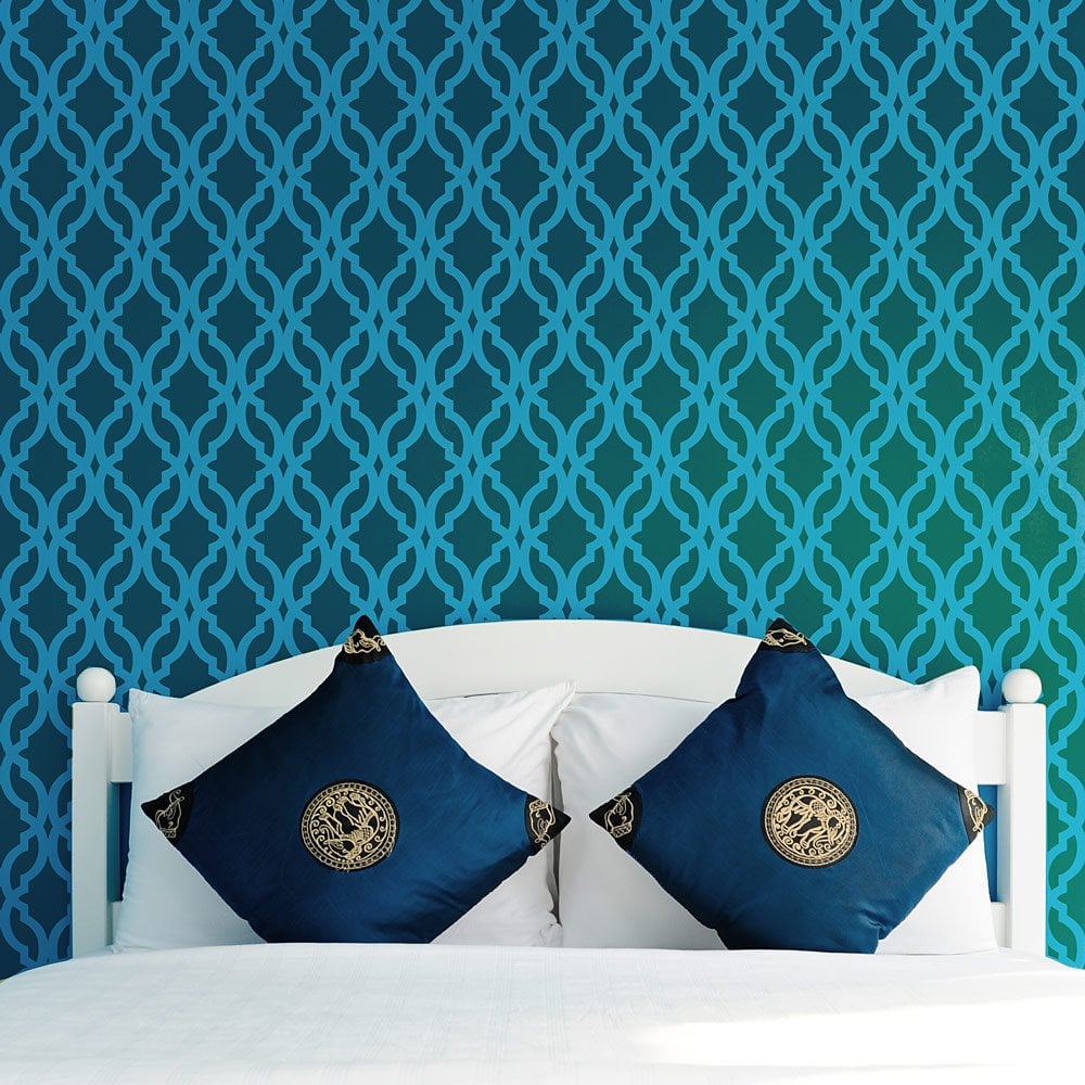 Moroccan-inspired wall pattern Tamara will make a stunning accent wall in any room! This stencil design is also perfect for curtains, floors and sisal rugs! Moroccan stencils are super trendy and are sure to spice up any decor. Stencil patterns are a great money-saving alternative to wallpaper. Stenciling offers complete customization of your space with unlimited paint choices to perfectly match your decor! A great tool for a creative DIY decorator.