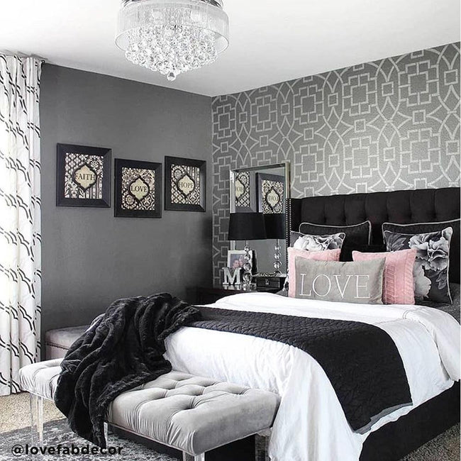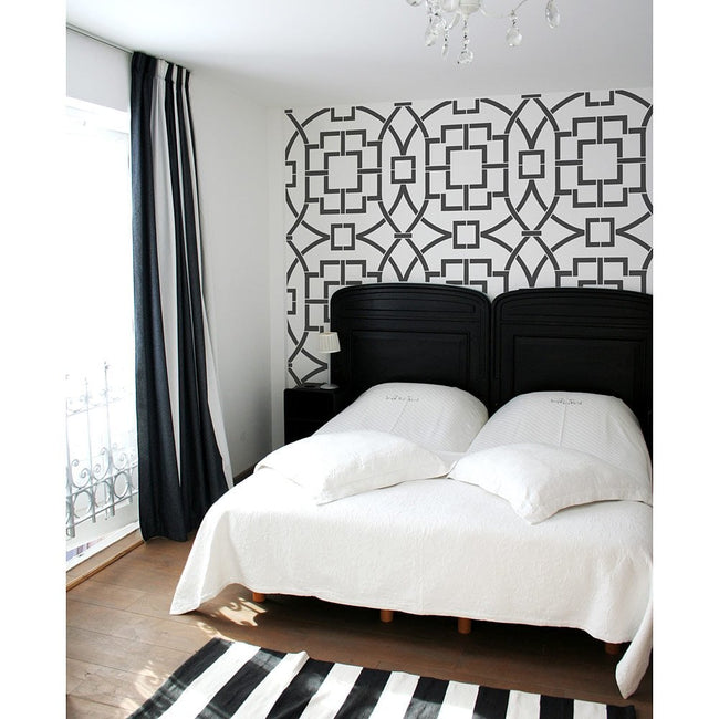 This beautiful Tea House Trellis stencil has an undeniable Eastern influence. Looks great in bedrooms, living rooms and dining rooms alike. This elegant wall pattern adds a layer of sophistication to your decor and is sure to impress.