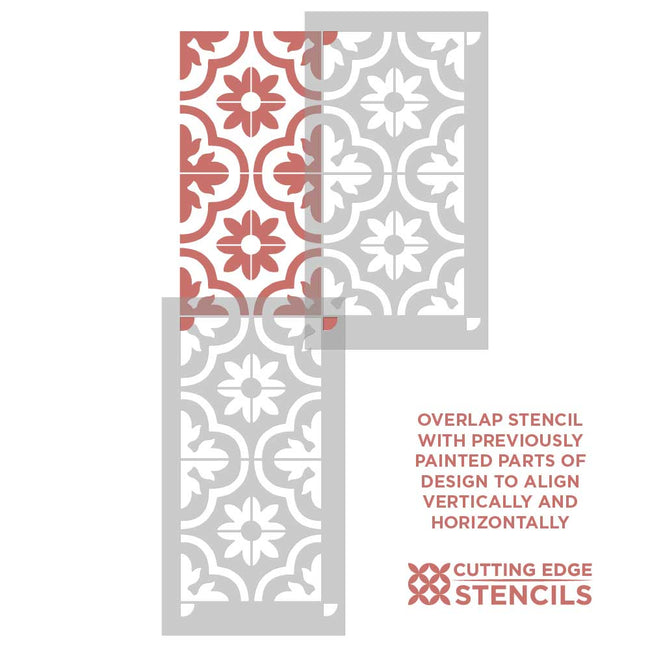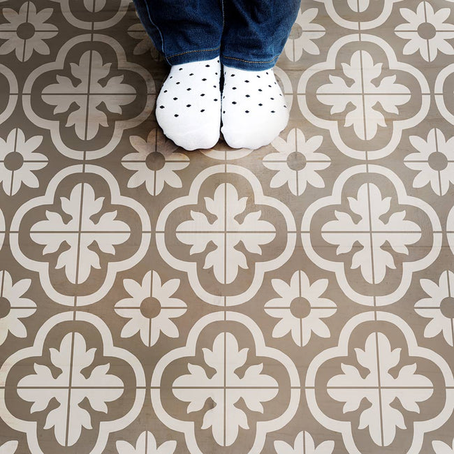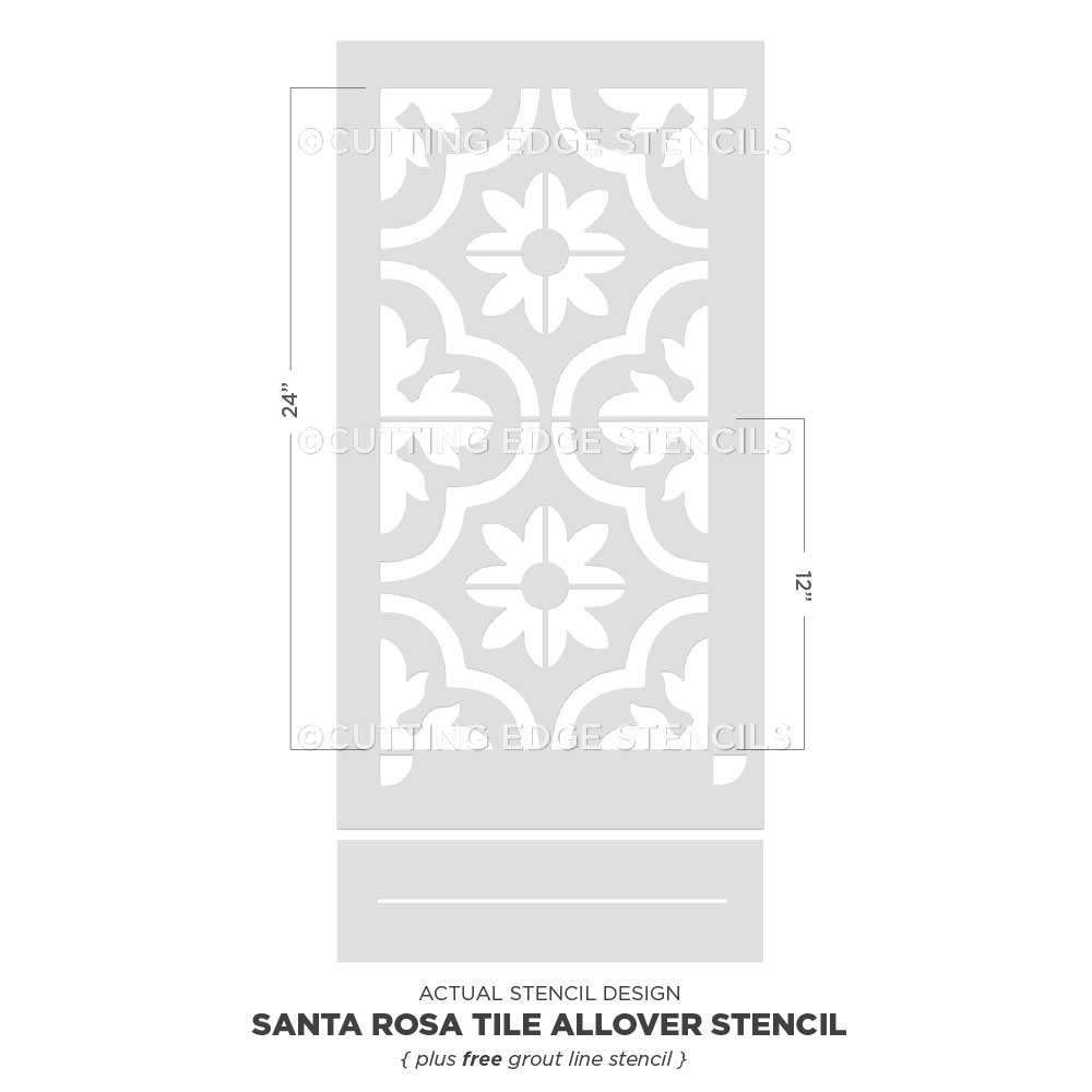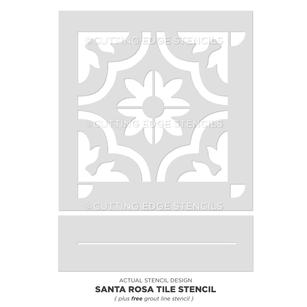 Our Santa Rosa Tile stencil design is a beautiful classic tile pattern, reminiscent of the past. It was inspired by antique Spanish and Portuguese tile patterns that are so popular today. Our tile stencils look great on walls, kitchen backsplashes or anywhere you would use cement floor tiles. Our tile stencil designs are super easy to use and provide big savings to more expensive alternatives of wallpaper and floor tiles. Get a Pinterest-worthy tile floor for a fraction of the price of real cement tile!