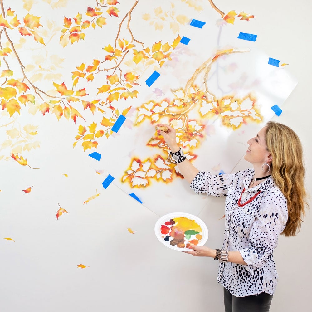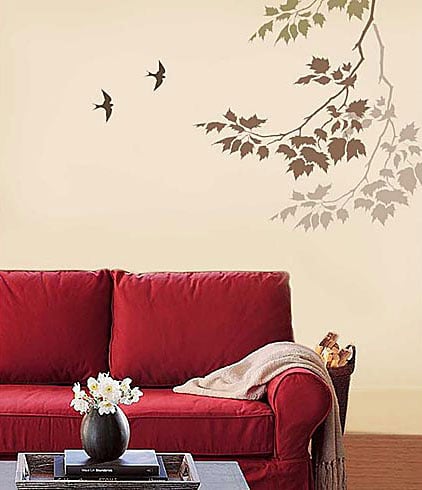 This stencil is so easy to use, virtually anyone can do it. Simply tape the branch to the wall using BLUE painter's tape, then load your foam roller with a paint of your choice (latex or acrylic). Offload the excess paint on a folded paper towel. Then, just roll over the stencil applying medium pressure for an instant fabulous result! Don't press on the roller too hard otherwise you might get some bleed under the stencil. Transform your room in less than 1 hour!