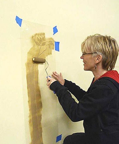 This tree stencil is so easy to use, virtually anyone can do it. Take a look at the pics! Simply tape the stencil to the wall using BLUE painter's tape, then load your foam roller with a paint of your choice (latex or acrylic). Offload the excess paint on a folded paper towel. Then, just roll over the stencil applying medium pressure for an instant fabulous result! Don't press on the roller too hard otherwise you might get some bleed. Use a separate roller (or stencil brush) for each color.