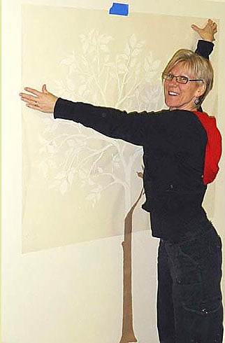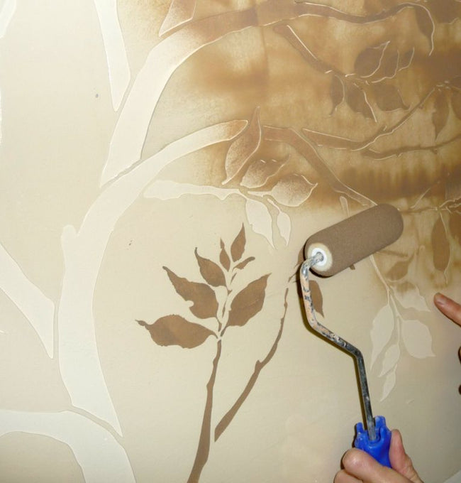 This tree stencil is so easy to use, virtually anyone can do it. Take a look at the pics! Simply tape the stencil to the wall using BLUE painter's tape, then load your foam roller with a paint of your choice (latex or acrylic). Offload the excess paint on a folded paper towel. Then, just roll over the stencil applying medium pressure for an instant fabulous result! Don't press on the roller too hard otherwise you might get some bleed. Use a separate roller (or stencil brush) for each color.