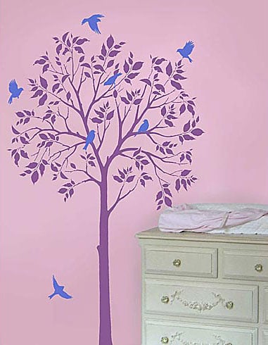 Bring nature in with this over-sized Tree & Birds stencil! This large tree stencil makes a stunning accent on a wall next to a sofa or table, above the bed or pretty much any wall space. Great for kids rooms! If you love the look of trendy vinyl wall decals but dislike the idea of putting vinyl stickers on your walls, these silhouette wall art stencils are just what you've been looking for. Not only are they re-usable, but they give you the flexibility of using any color you want. You'll also get the satisfaction of knowing that you've created your own hand-painted wall art instead of just applying a sticker.