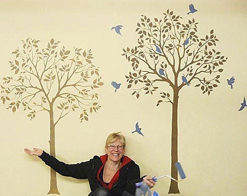 This large tree stencil will instantly transform a room. Stencil just a single tree, or create an entire forest with just one reusable stencil. Use different colors, add playful Birds or butterflies, or just keep it simple - the choice is yours. You can use the included free Garden Birds stencil to easily create a flock of flying birds.