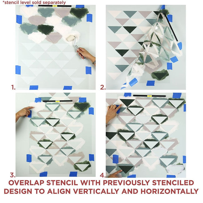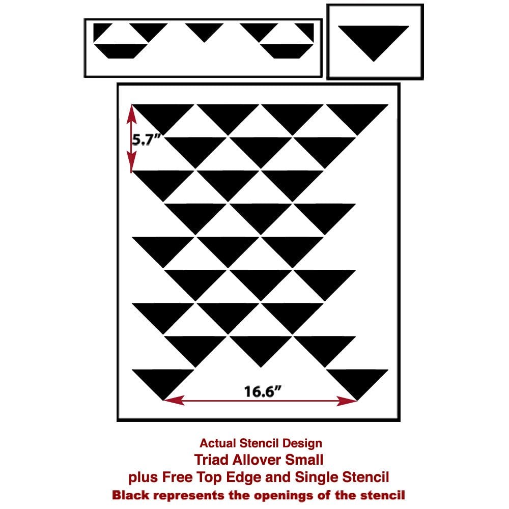 Our crisp geometric stencil pattern Triad is perfect for contemporary accent walls! This trendy geometric stencil design looks gorgeous on walls, furniture and fabrics. It looks stunning done tone-on tone or using different colors for each triangle.