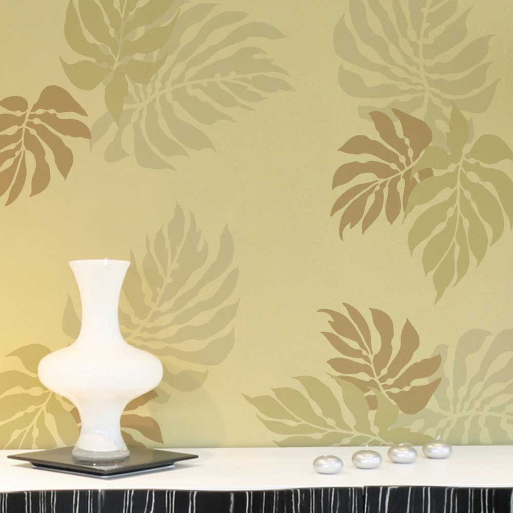 Bermuda Breeze Tropical Leaf Stencils neutral bedroom