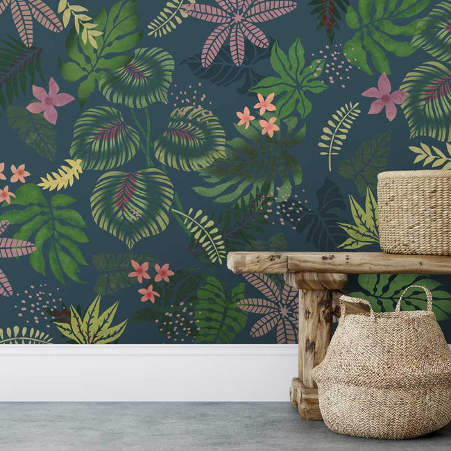 Tropical trend stencils palm leaves wall pattern wallpaper