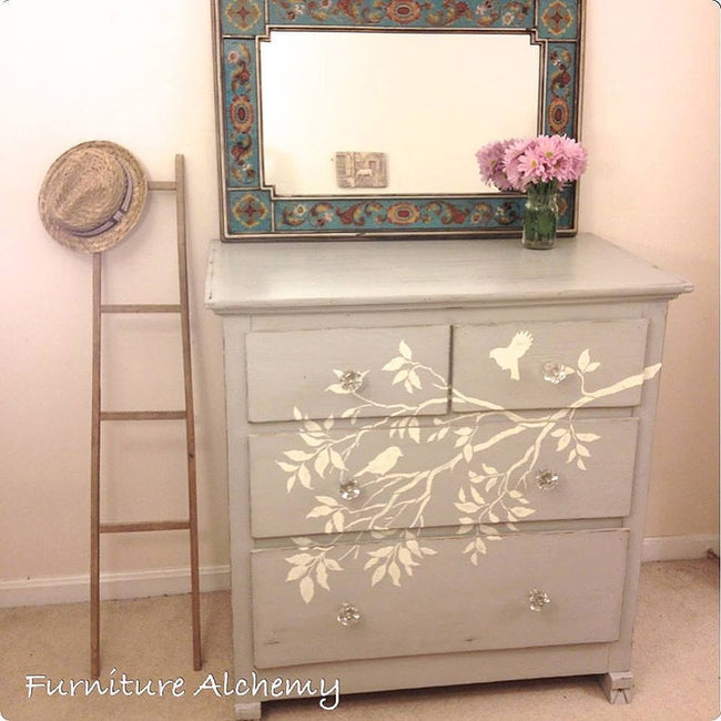 This lovely stencil Birds on a Branch is perfect for quick and easy wall decorating. It adds a touch of nature to the room.