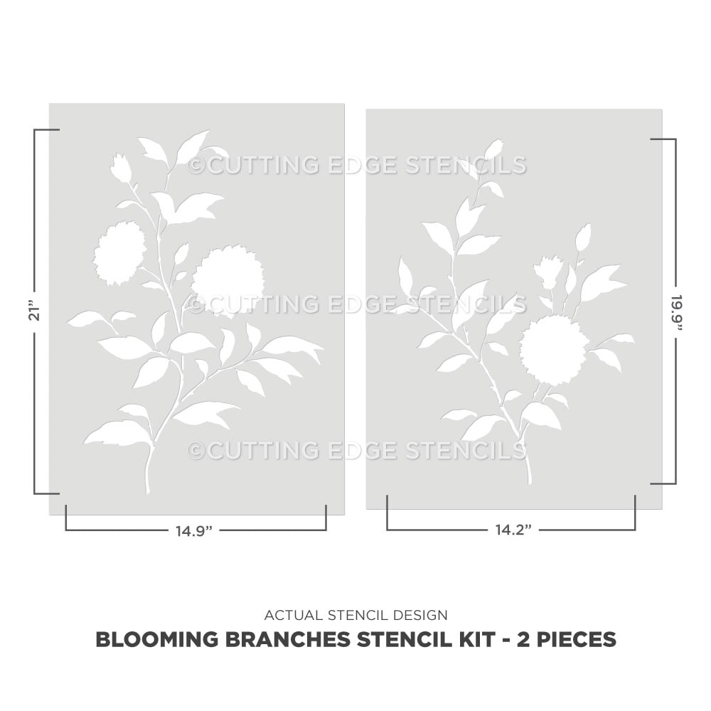 Beautiful stenciled Blooming Branches bring the feeling of spring and joy. This floral stencil makes a stunning accent above the sofa or table, above the bed or pretty much any wall space. Overlap it, use different colors, create your own allover stencil pattern, add shading - possibilities are endless. Use this stencil over simple latex paint, plaster, faux finish background and even wallpaper if it is in decent condition.