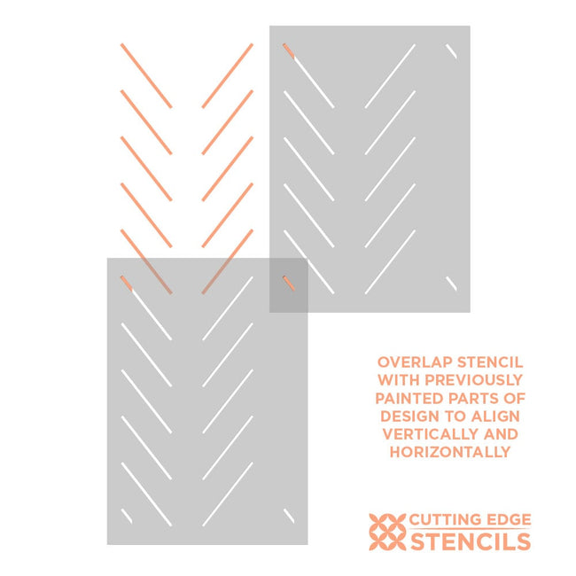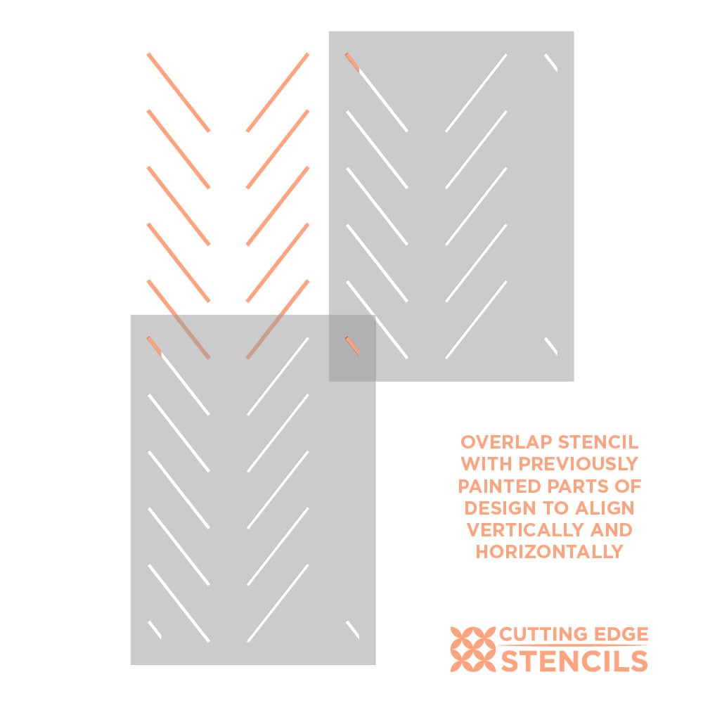 The growing geometric accent wall trend inspired our Ella Herringbone wall stencil pattern. This wall stencil was influenced by both our traditional Herringbone and Chevron patterns. Our wall stencils feature an easy and intuitive registration system for accurate alignment. This wall stencil is special because there is no color combination or room that it won’t look good in! Perfect for Modern Farmhouse interiors and for contemporary rooms.
