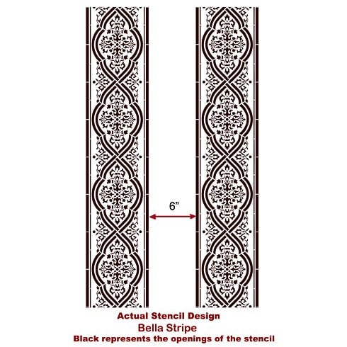 Looks great as a border, as a stripe, or on beams. There are 2 stripes cut on a single oversized sheet with 6" interval in between. This stencil is designed with production speed in mind, allowing you to cover wall space quickly. Give your Dining room elegant stripes, and dress up your kitchen or bath with a border using just one versatile stencil.