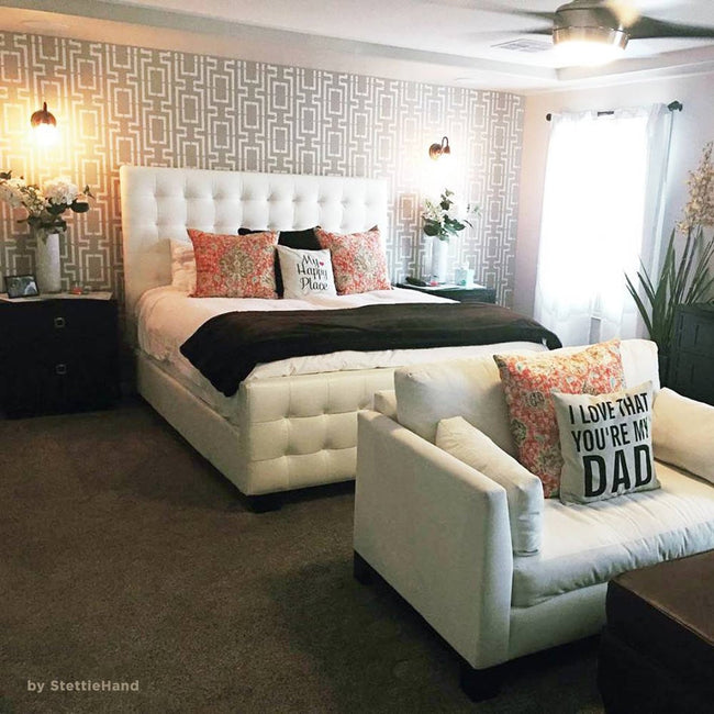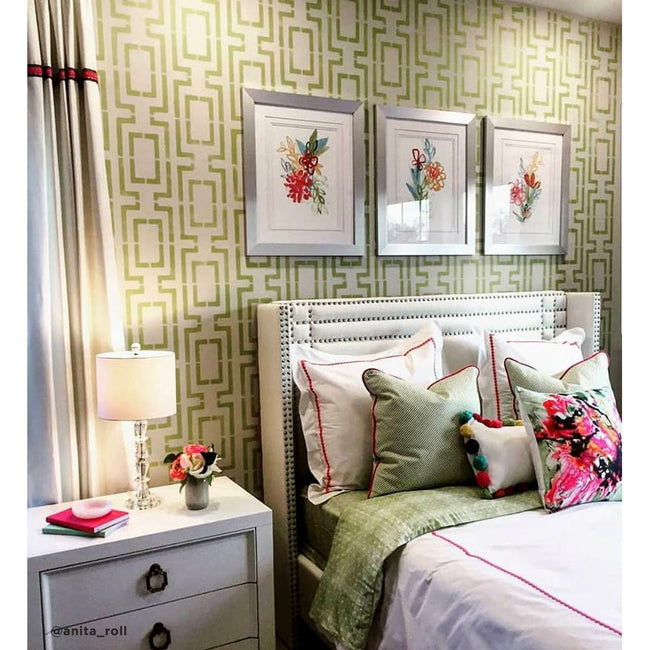 Why use expensive designer wallpaper when you can simply stencil your walls with this trendy geometric Connection Stencil! Reusable wallpaper stencils save you ton of money and make you feel proud of your creation. Your friends are not going to believe you've stenciled this yourself! This geometric stencil pattern is perfect for DIY decor. Our stencil patterns bring stylish elegance to any room. This allover pattern is great for contemporary decor, it looks stunning on the accent wall, for which it is recommended. This stencil also works for curtains, pillows and furniture embellishment.