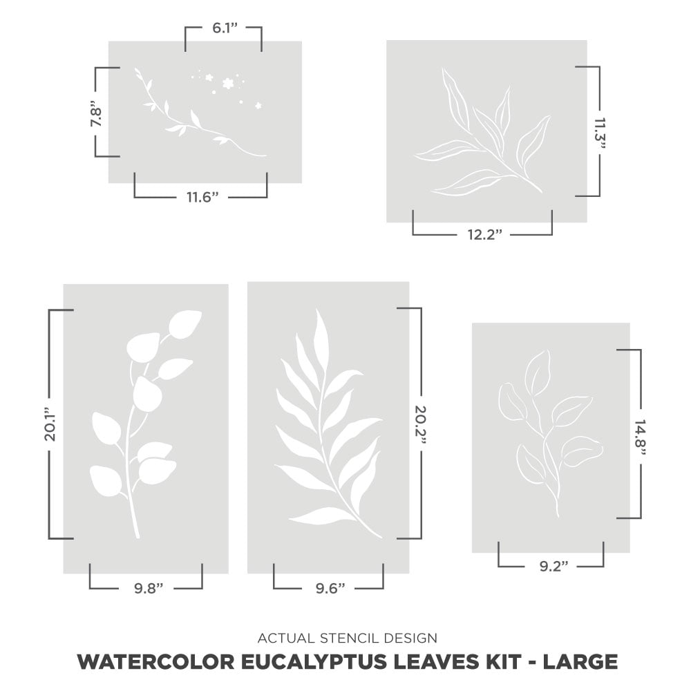 Watercolor Eucalyptus Leaves Wall Pattern Stencil Kit
