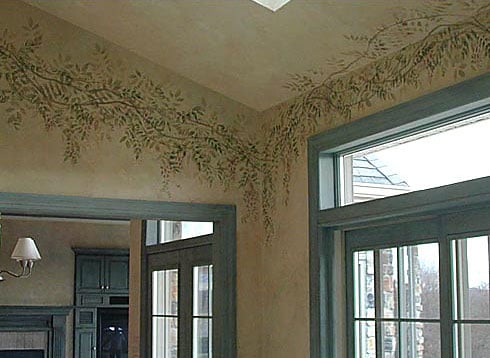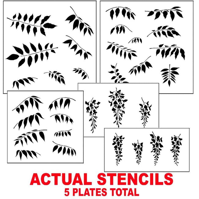 Stenciling an incredible Wisteria border is easy when using our fool-proof kit. Simply paint your vines and then artfully add stenciled leaves and blossoms. This way of stenciling allows for a great flexibility and creativity. You can follow the contours of doorways and arches with your wisteria vines, or paint a weeping wisteria tree. You can even paint an elegant wisteria wreath around the chandelier! You'll get 25 realistic wisteria leaf shapes and 7 blossoms in this awesome kit. These stencils offer amazing level of detail!