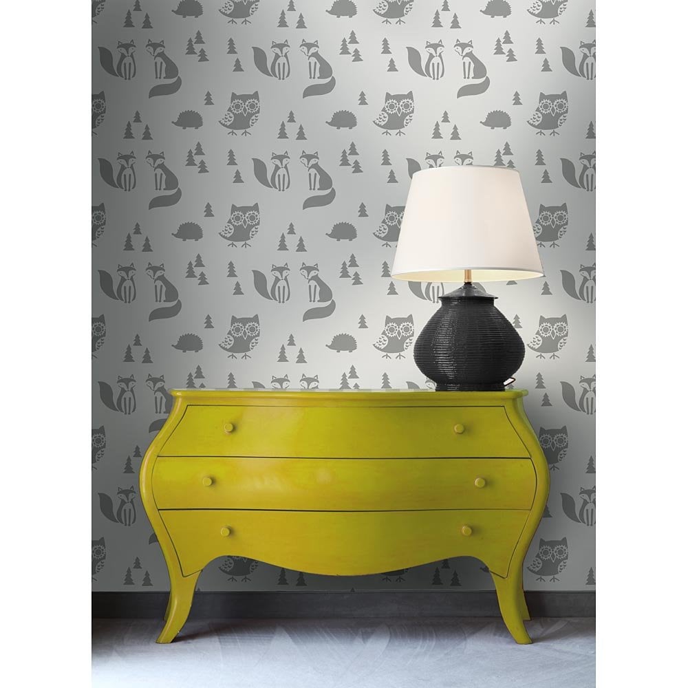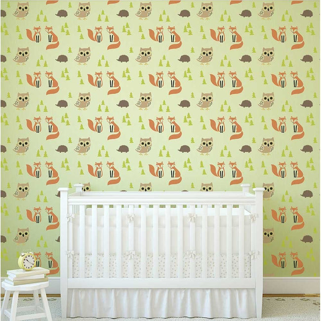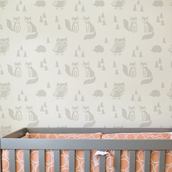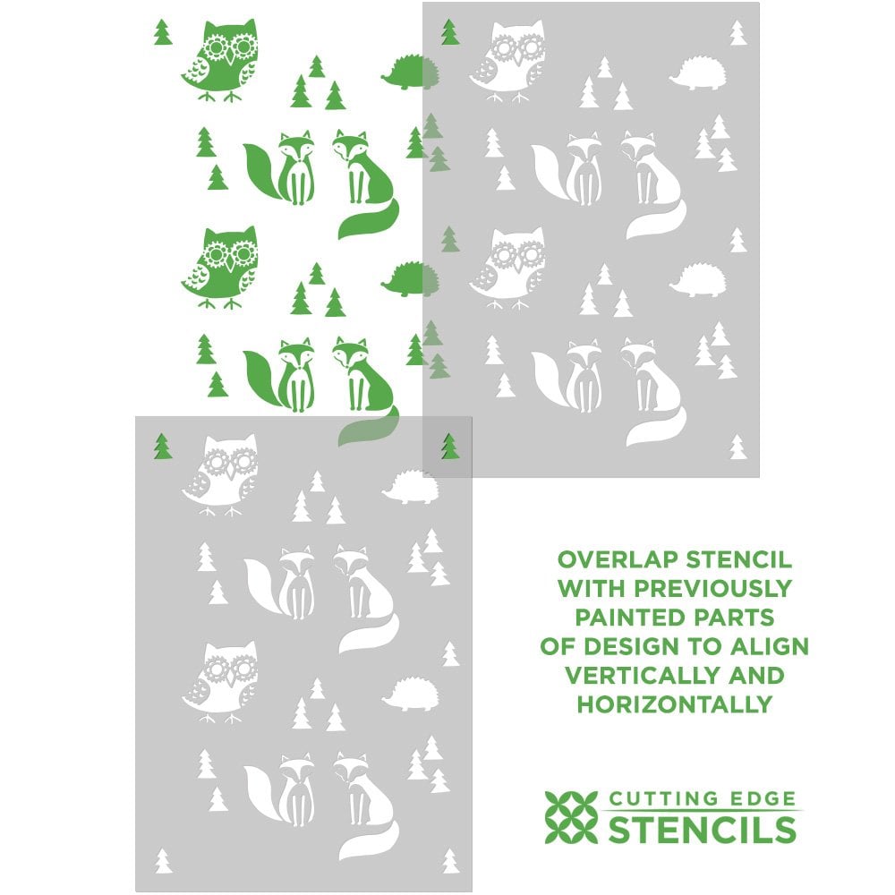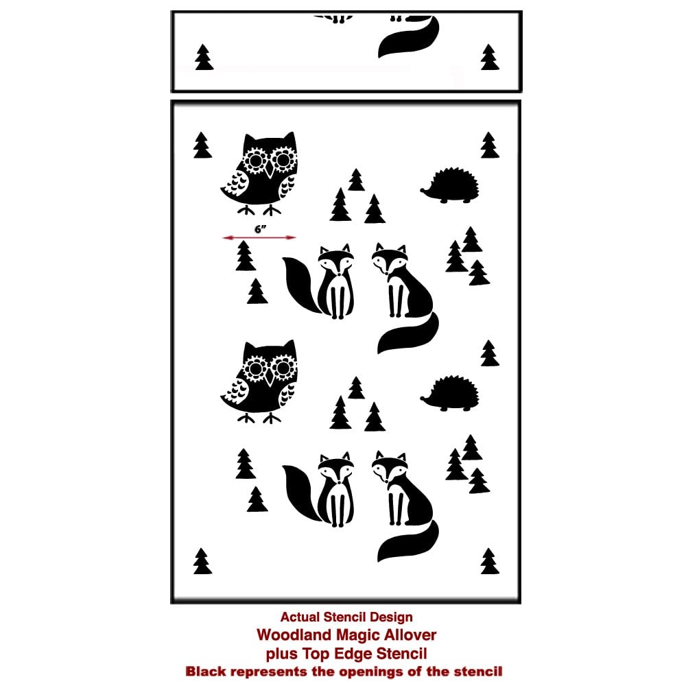 What do you get when you mix Owls, Foxes and Hedgehogs together? You get our Woodland Magic Allover Stencil. This stencil pattern looks great when painted in one color or with multiple colors. Stencil all the walls or create a focal point above the crib. These feathered and furry friends can't wait to be part of your family. Perfect choice for Woodland theme nursery! You can stencil this cool pattern in one color using a dense foam roller, or create a multi-colored effect by using stencil brushes. This woodland design looks great stenciled on curtains too!