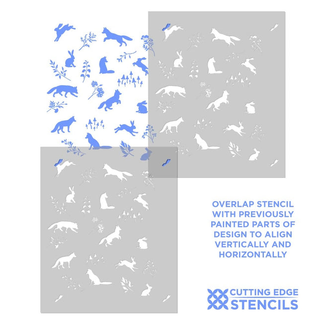 Check out this lovely woodland stencil called Fox and Hare! This whimsical forest stencil is right on trend, as nature woodland themes are very popular in today's nursery decor. You can stencil the foxes and hares in one color using a dense foam roller for a simple monochromatic effect, or get crafty and paint each animal stencil in various colors using stencil brushes. Selecting a dark color background paint with make the whole design pop, as the animals will be stenciled in lighter paints on a dark wall. Unlike pricey woodland nursery wallpaper, our reusable animal stencil offers you an opportunity to choose your own color combinations and to perfectly match your decor. Stencil this magical forest design complete with cute foxes and hares in your kid's room or nursery! Bring the nature in, it's good for your little one :) Use stencils and save big on your nursery project!